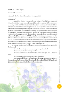 for learning) การประเมินที่ท าให้นักศึกษาสามารถประเมินตนเองเป็น และมีการน าผลการประเมินไปใช้ในการ