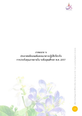 ภาคผนวก จ ประกาศหลักเกณฑ์และแนวทางปฏิบัติเกี่ยวกับ การประกันคุณภาพภายใน ระดับอุดมศึกษา พ.ศ. 2557 คู่มือการประกันคุณภาพการศึกษาภายใน | IQA Manual 2018 : Suan sunandha Rajabhat University 177