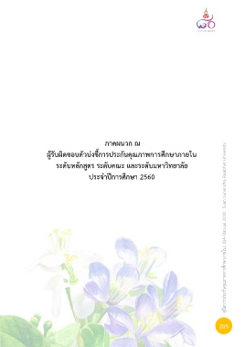 ภาคผนวก ฌ ผู้รับผิดชอบตัวบ่งชี้การประกันคุณภาพการศึกษาภายใน ระดับหลักสูตร ระดับคณะ และระดับมหาวิทยาลัย ประจ าปีการศึกษา 2560 คู่มือการประกันคุณภาพการศึกษาภายใน | IQA Manual 2018 : Suan Sunandha Rajabhat University 205