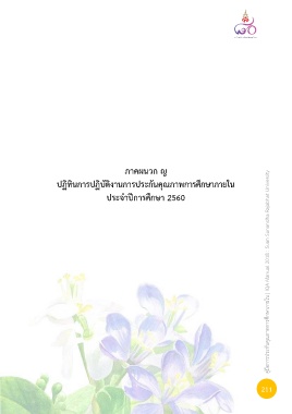 ภาคผนวก ญ ปฏิทินการปฏิบัติงานการประกันคุณภาพการศึกษาภายใน ประจ าปีการศึกษา 2560 คู่มือการประกันคุณภาพการศึกษาภายใน | IQA Manual 2018 : Suan Sunandha Rajabhat University 211