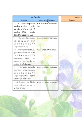 กิจกรรม ระยะเวลา/ผู้รับผิดชอบ กิจกรรม ระยะเวลา/ผู้รับผิดชอบ กิจกรรม ระยะเวลา/ผู้รับผิดชอบ