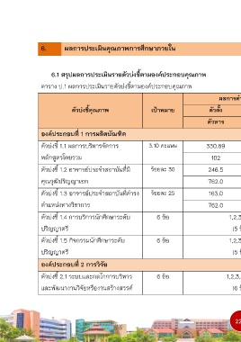 6.1 สรุปผลการประเมินรายตัวบ่งชี้ตามองค์ประกอบคุณภาพ