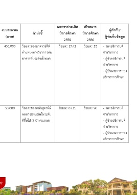9. มีบางหลักสูตร (12 หลักสูตร) ที่ผล 11. โครงการบริหารหลักสูตรสู่ความ 1 ต.ค. 60 30,000 ร้อยละของหลักสูตรที่มี ร้อยละ 87.25 ร้อยละ 90 - รองอธิการบดี
