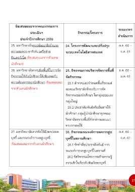 26. มหาวิทยาลัยควรเพิ่มพื้นที่ในการจัด 25. กิจกรรมการบริหารจัดการพื้นที่ ธ.ค. 60 – - คะแนนเฉลี่ยความพึง - ≥ 4.00 - รองอธิการบดี