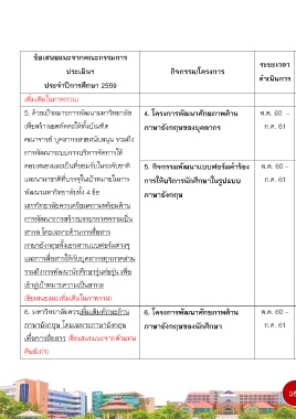 6. มหาวิทยาลัยควรเพิ่มเติมทักษะด้าน 6. โครงการพัฒนาศักยภาพด้าน ต.ค. 60 – - ร้อยละของนักศึกษาที่ - ร้อยละ 100 - อธิการบดี