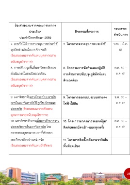 7. ควรจัดให้มีการตรวจสุขภาพประจ าปี 7. โครงการตรวจสุขภาพประจ าปี ก.พ. – มี.ค. 600,000 ร้อยละของบุคลากรที่ - ร้อยละ 80 - อธิการบดี