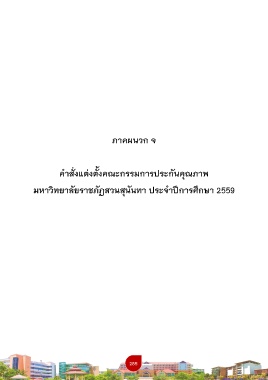 ภาคผนวก จ ค าสั่งแต่งตั้งคณะกรรมการประกันคุณภาพ มหาวิทยาลัยราชภัฏสวนสุนันทา ประจ าปีการศึกษา 2559 285