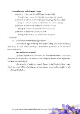 ยุทธศาสตรที่ 2 : สรางผลงานวิชาการสูการยกระดับภูมิปญญาทองถิ่นอยางยั่งยืน