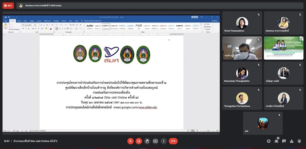 This afternoon (April 20, 2022) at 13.00, Assoc. Prof. Dr. Witthaya Mekkham, Vice President for Planning and Quality Assurance assigned Asst. Prof. Dr. Kannikar Piromrat, Dean of the Faculty of Education, Asst. Faculty of Education along with quality assurance and knowledge management personnel Policy and Planning Division Participate in the 2nd Site Visit Online activity between educational institutions and affiliated agencies qualified and the coordination center.