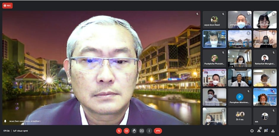 This morning (17 March 2022) at 09.30 Assoc. Prof. Dr. Wittaya Mekkham, Vice President for Planning and Quality Assurance with personnel from the Quality Assurance and Knowledge Management Department Participated in the 3/2565 meeting of the Working Group to promote the use of assessment results to improve the quality of educational institutions via Google Meet online system.