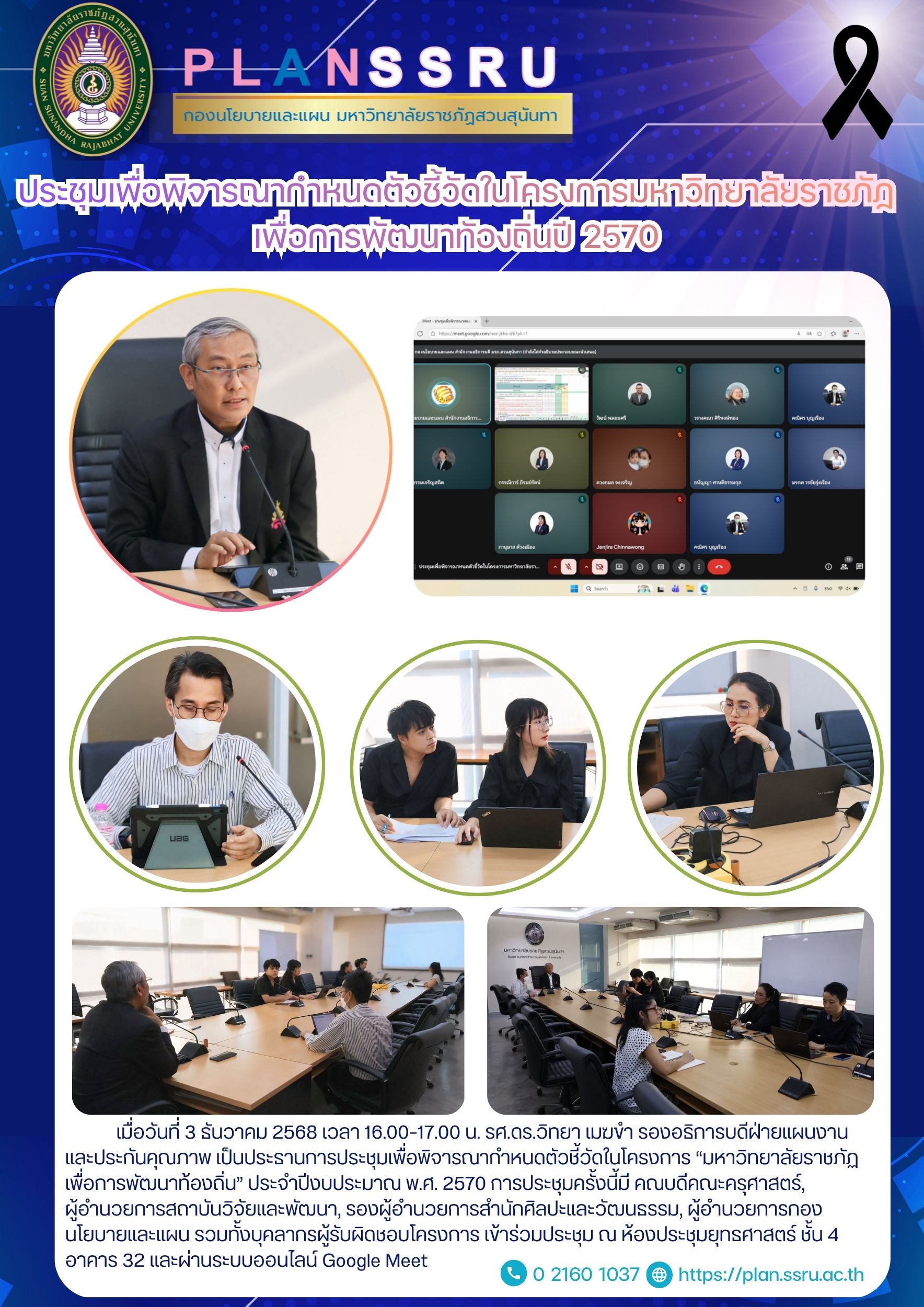 การประชุมครั้งนี้ถือเป็นอีกหนึ่งกระบวนการสำคัญที่สะท้อนถึงบทบาทของมหาวิทยาลัยราชภัฏสวนสุนันทาในการขับเคลื่อนการพัฒนาท้องถิ่นอย่างเป็นระบบและยั่งยืน