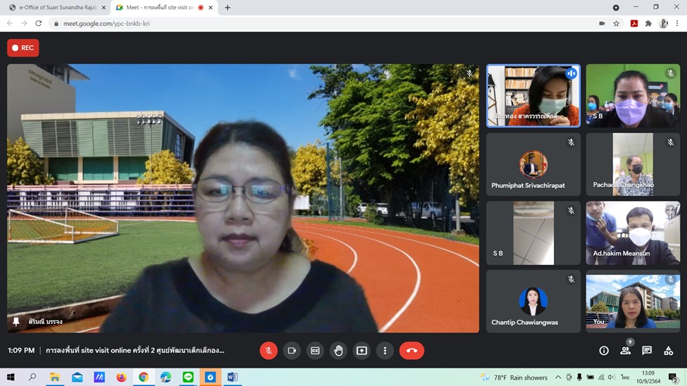 วันที่ 10 ก.ย. 64 เวลา 13.00-16.00 น. ผู้ทรงคุณวุฒิฯ ผู้เชี่ยวชาญฯ จากคณะครุศาสตร์ มหาวิทยาลัยราชภัฏสวนสุนันทา หน่วยงานต้นสังกัดส่วนกลางและพื้นที่ ผู้แทน สมศ. พร้อมทั้งบุคลากรฝ่ายประกันคุณภาพและการจัดการความรู้ กองนโยบายและแผน ดำเนินงานลงพื้นที่ site visit online ครั้งที่ 2 ศูนย์พัฒนาเด็กเล็กองค์การบริหารส่วนตำบลบางเพรียง จังหวัดสมุทรปราการ ภายใต้โครงการนำร่องการส่งเสริมการนำผลประเมินไปใช้พัฒนาคุณภาพสถานศึกษา ประจำปีงบประมาณ พ.ศ. 2564 เพื่อวางแผนในการยกระดับคุณภาพสถานศึกษาฯ ผ่านระบบออนไลน์ โปรแกรม Google meet