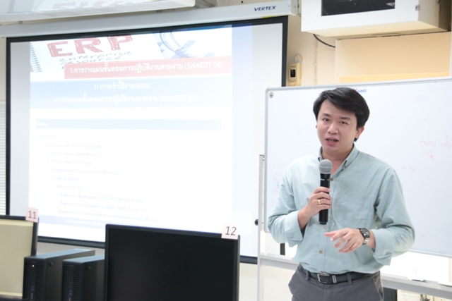 วันอังคารที่ ๙ ตุลาคม ๒๕๖๑ เวลา ๐๙.๐๐-๑๕.๐๐ น. ณ ห้องปฏิบัติการคอมพิวเตอร์ (๓๑๒๒) สำนักวิทยบริการและสารสนเทศ อาคาร ๓๑ ชั้น ๒ กองนโยบายและแผนจัดอบรม “การสร้างความรู้ความเข้าใจต่อการปฏิบัติงานในระบบ ERP” และการบริหารงบประมาณ ประจำปีงบประมาณ พ.ศ. ๒๕๖๒ ให้กับบุคลากรผู้ปฏิบัติงาน เพื่อสร้างความรู้ความเข้าใจเกี่ยวกับการรายงานผลการเบิกจ่ายและผลการดำเนินงานโครงการตามยุทธศาสตร์แผนปฏิบัติการ และการพัฒนาระบบการติดตามงบประมาณให้มีประสิทธิภาพยิ่งขึ้นโดยลดขั้นตอน และลดความซ้ำซ้อนในการรายงานผลในระบบ ERP