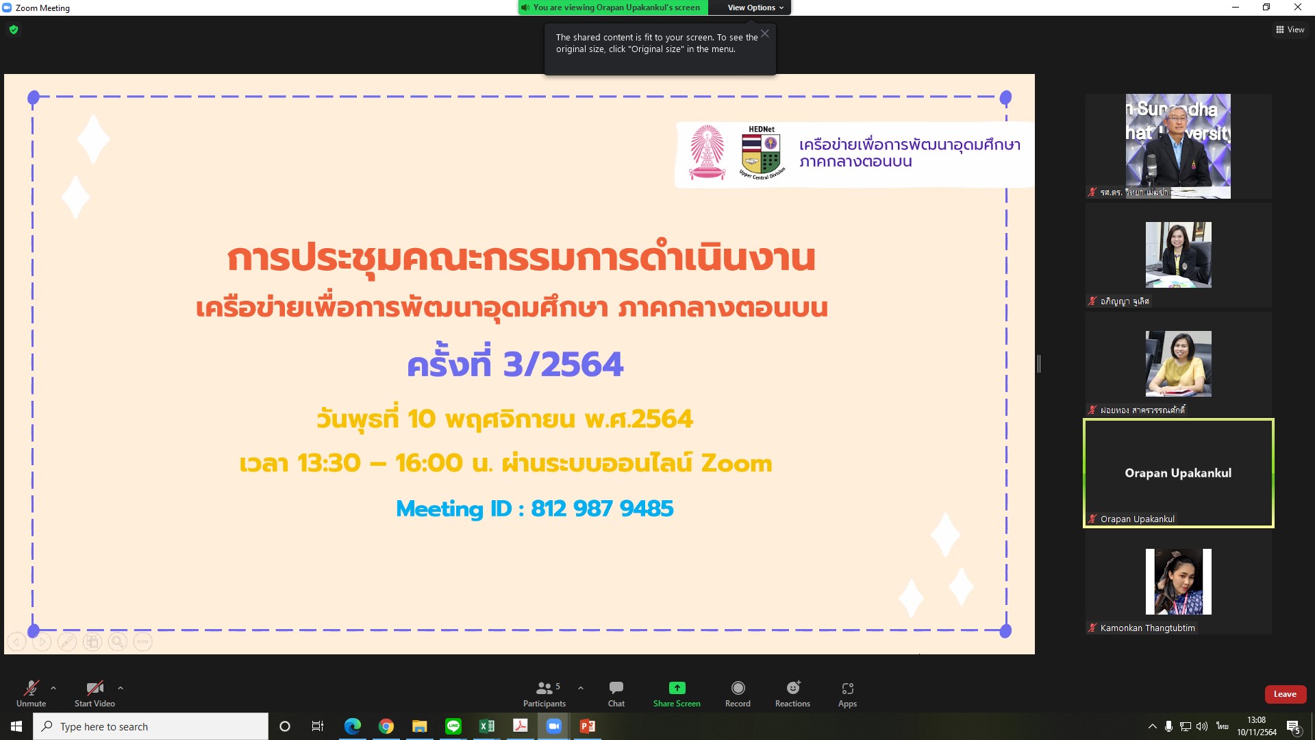 วันที่ 10 พ.ย. 64 เวลา 13.30 น. รองศาสตราจารย์ ดร.วิทยา เมฆขำ รองอธิการบดีฝ่ายแผนงานและประกันคุณภาพ และบุคลากรฝ่ายประกันคุณภาพฯ เข้าร่วมประชุมคณะกรรมการดำเนินงานเครือข่ายเพื่อการพัฒนาอุดมศึกษา ภาคกลางตอนบน ครั้งที่ 3/2564 ในนาม ประธานเครือข่ายอุดมศึกษา เพื่อพัฒนาการประกันคุณภาพการศึกษาระดับอุดมศึกษา ภาคกลางตอนบน ได้รายงานสรุปผลการดำเนินงานเครือข่ายอุดมศึกษาเพื่อพัฒนาการประกันคุณภาพการศึกษาระดับอุดมศึกษา ภาคกลางตอนบน พ.ศ. 2564 ในช่วงเดือนกรกฎาคม - ตุลาคม 2564 ผ่านระบบการประชุมออนไลน์ โปรแกรม Zoom Meeting