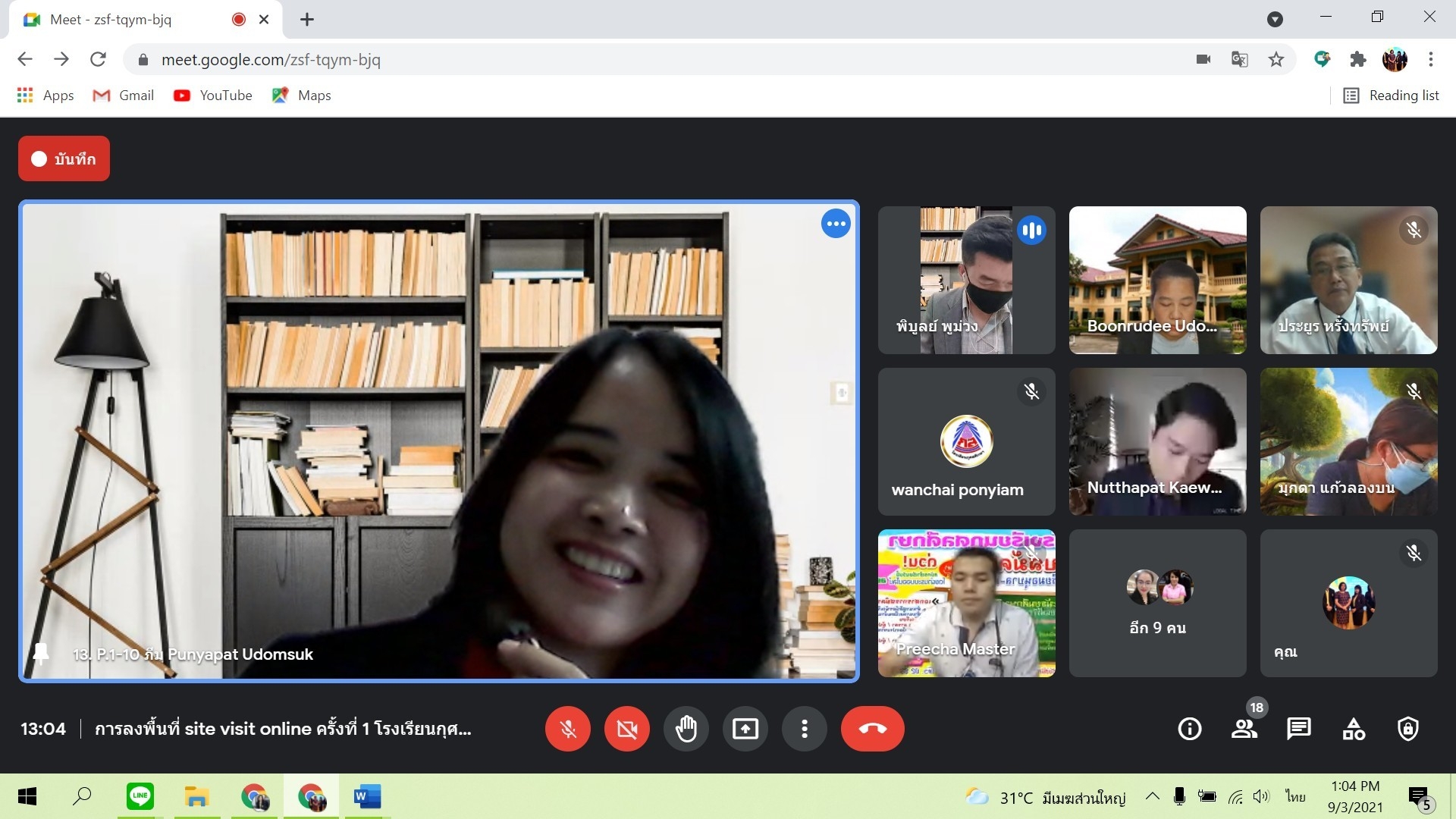 วันที่ 3 ก.ย. 64 เวลา 13.00-15.00 น. ผู้ทรงคุณวุฒิฯ ผู้เชี่ยวชาญฯ จากคณะครุศาสตร์ และคณะวิทยาศาสตร์และเทคโนโลยี มหาวิทยาลัยราชภัฏสวนสุนันทา หน่วยงานต้นสังกัดส่วนกลางและในเขตพื้นที่ ผู้แทน สมศ. พร้อมทั้งบุคลากรฝ่ายประกันคุณภาพและการจัดการความรู้ กองนโยบายและแผน ดำเนินงานลงพื้นที่ site visit online ครั้งที่ 1 โรงเรียนกุศลศึกษา กรุงเทพมหานคร ภายใต้โครงการนำร่องการส่งเสริมการนำผลประเมินไปใช้พัฒนาคุณภาพสถานศึกษา ประจำปีงบประมาณ พ.ศ. 2564 ของสำนักงานรับรองมาตรฐานและประเมินคุณภาพการศึกษา (สมศ.) เพื่อวางแผนในการยกระดับคุณภาพสถานศึกษาฯ ผ่านระบบออนไลน์ โปรแกรม Google meet
